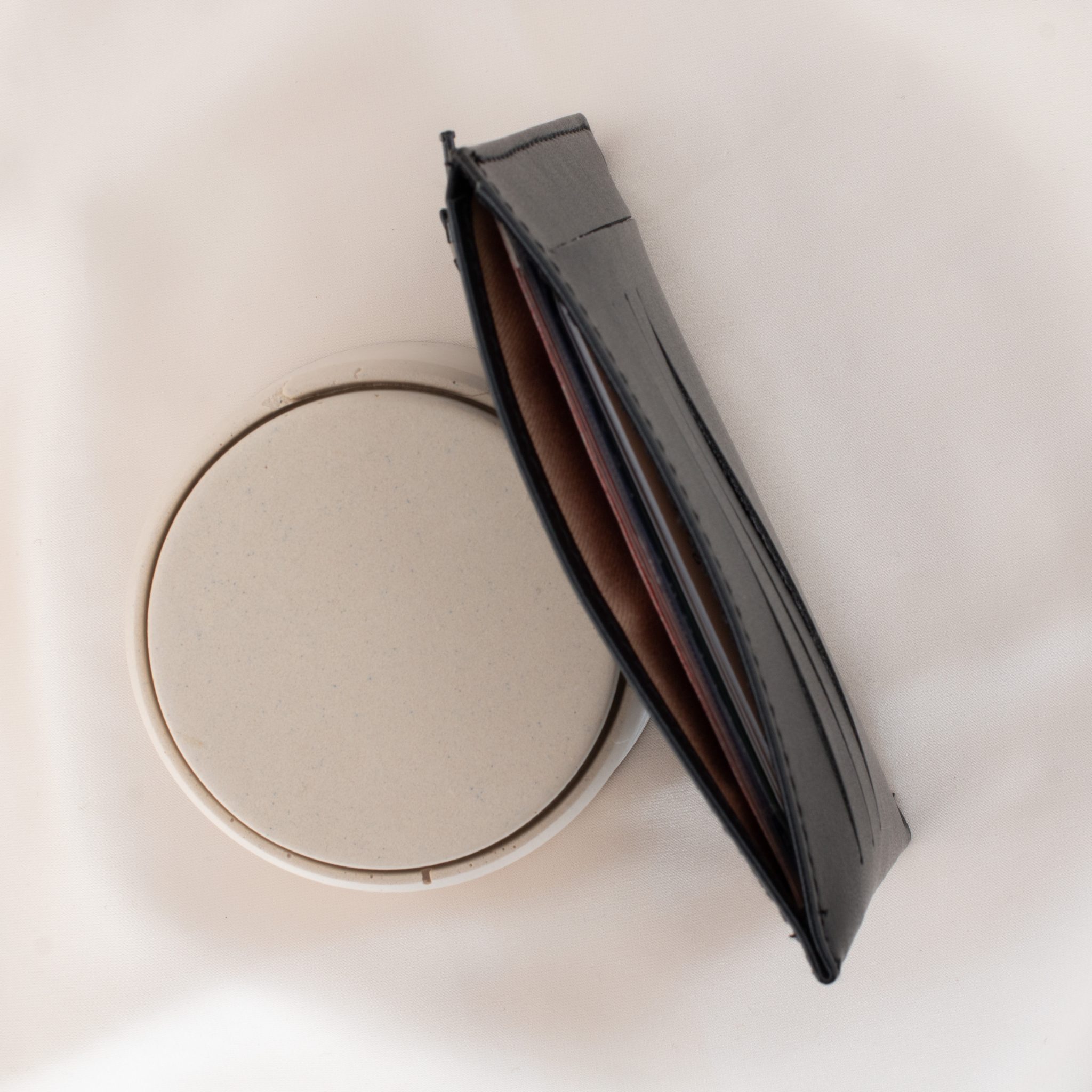Jasmin est le portefeuille compact plat. Il possède une jolie contenance avec son gabarit fin et léger : trois fentes pour glisser ses cartes bancaires, permis de conduire (ancienne et nouvelle génération), pass ou tickets par exemple; une fente latérale verticale qui permet de glisser sa carte d’identité et le compartiment supérieur, son permis de conduire. Jasmin possède une fermeture zippée au dos.