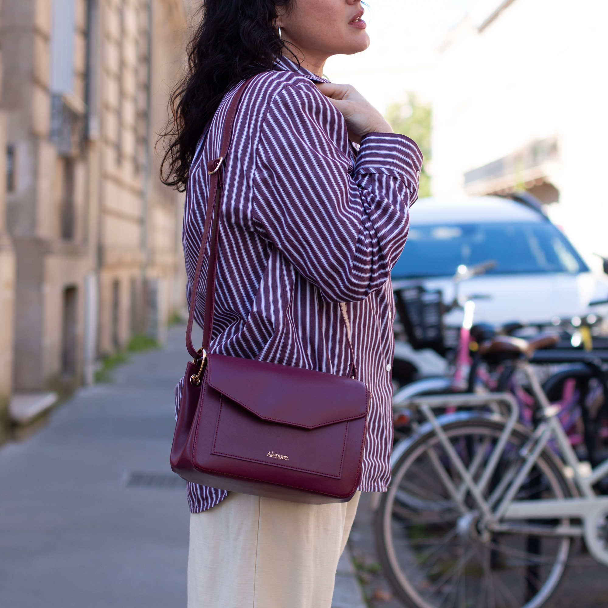 | Choix de bandoulière | Bandoulière bordeaux, Bandoulière chaîne dorée, Les bandoulières chaîne et bordeaux |